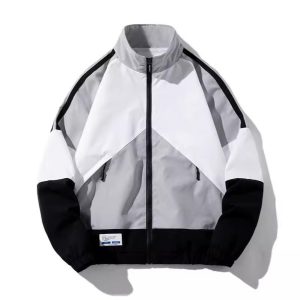 Sports trench coat personality Korean version of the trend handsome clothes spring and autumn stand-up collar color blocking