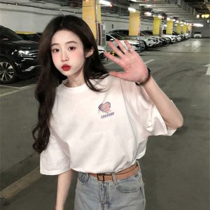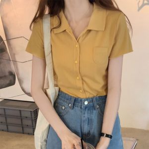 Polo neck striped ice silk short sleeve T-shirt women’s front shoulders