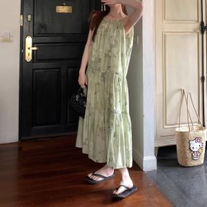 New Chinese style disc buckle halterneck dress