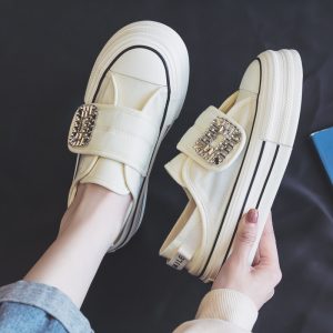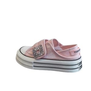 One pedal, half trawl velcro and two women wearing platform canvas shoes quantity
